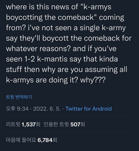 보이콧 어쩌고 관련해서 케이 아미 전체가 그러는 거 아니라면서 글 이어서 씀