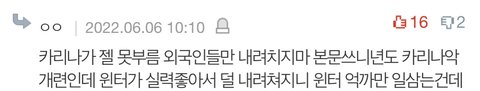 미안한데 본문에 카리나 윈터 지젤 닝닝 다 언급했는데 내가 어딜봐서 카리나 악개냐..?
