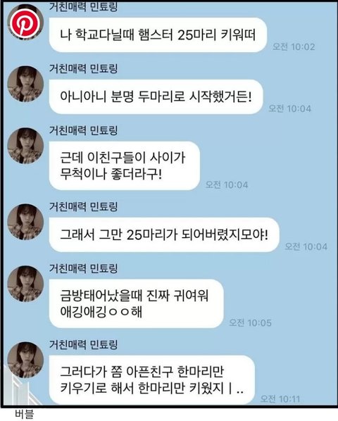 유명해서 다들 한번쯤은 들어봤을텐데 햄스터는 한 케이지에 2마리만 있어도 물어뜯는 경우도 있는데 2마리도 아니고 25마리나 키우고 번식할땐 딱히 신경 안쓴것같아 근데 그 시대는 길거리에서 500원만 줘도 햄스터를 살수 있는 시대여서 충분히 그럴수있다고 생각해 하지만 그걸 지금 자랑하듯이 말하는건 문제가 있다고 생각해