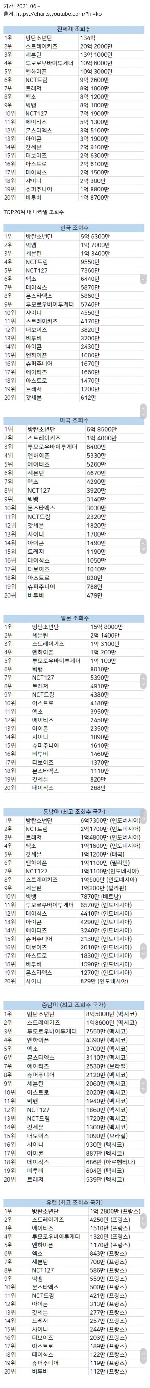 https://charts.youtube.com/?hl=ko 이 링크 기준으로 집계한 거고 일단 프로모션 제외 기준임