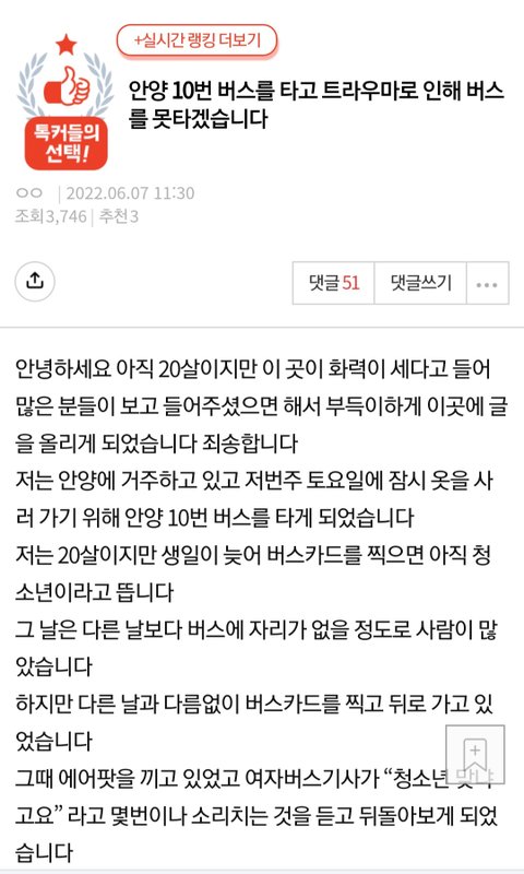 [원본지킴이]안양 10번 버스를 타고 트라우마로 인해 버스를 못타겠습니다