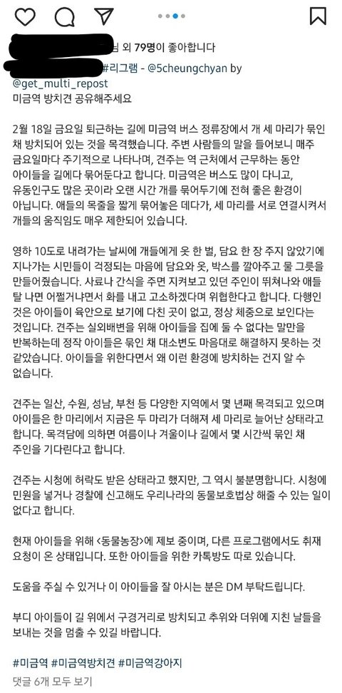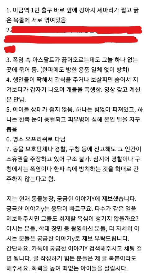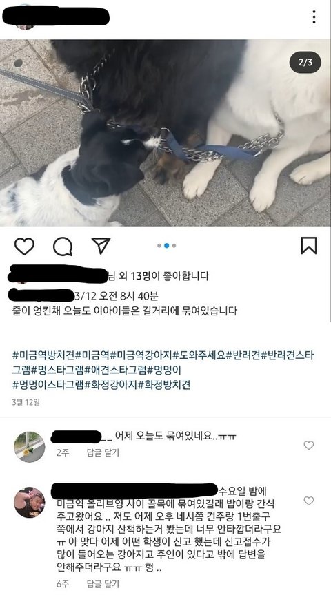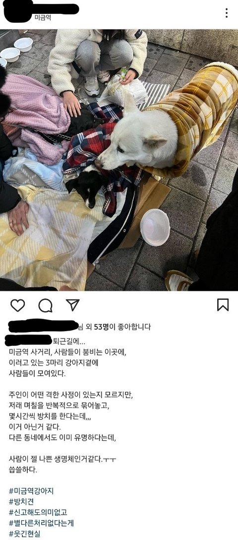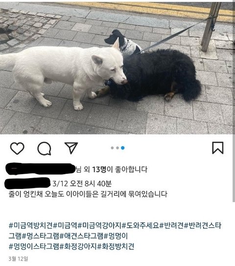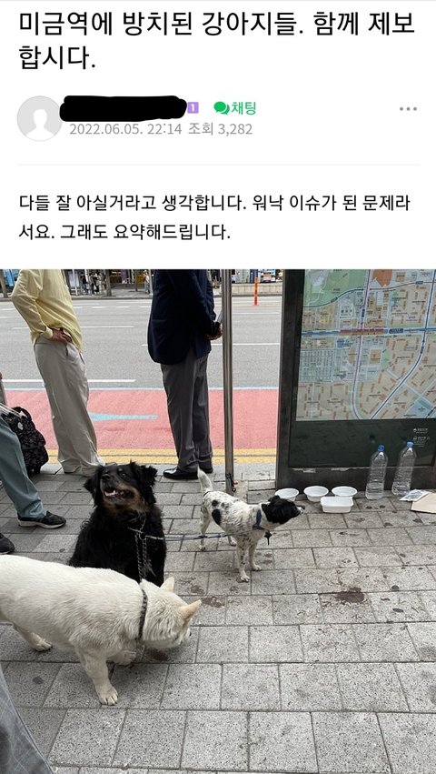 다름이 아니라 분당 미금역에서 오랜기간 동안 셋이 나란히 묶인채 방치된 강아지들에 대해