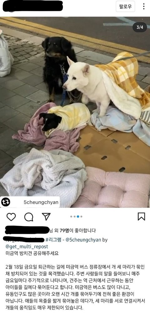 *세마리의 방치견들을 위해 <동물농장> 또는 <동물단체>에 많은 제보 부탁드립니다*