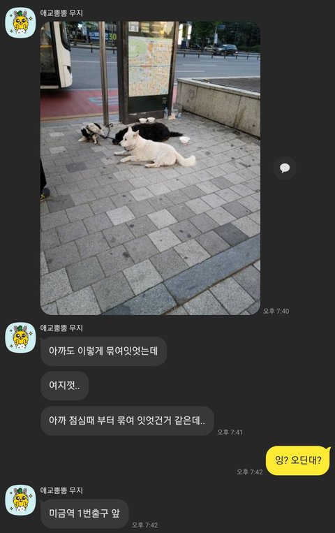 처음에는 지인에게 사진을 받고 잠깐 묶어두고 일을 보러간게 아닐까, 하는 생각이었지만