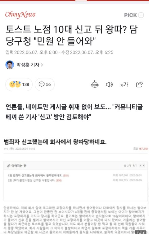샌드위치 파는 중학생 신고했단 사람 주작 기사남