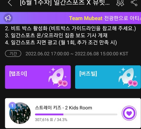 뮤빗 최고아이돌 자체컨텐츠는?