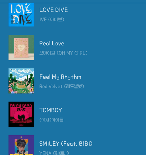 ka톡 프뮤 목록인데 일코하느라 밑에 플리도 다 여돌노래거등 근데 여기에 옛투컴..... 추가해도 그냥 대중픽이니까 듣는 사람 같겠지??? 일코 완전 힘드네