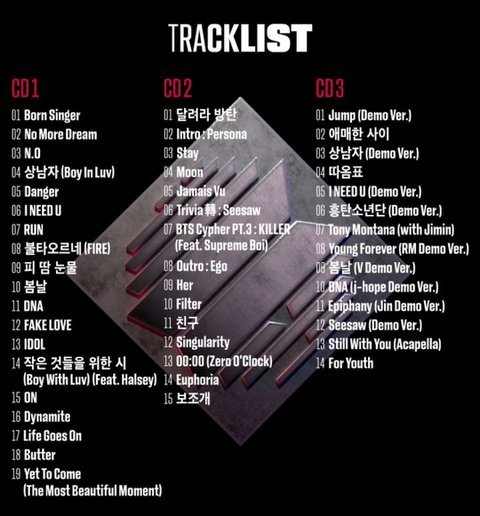 신곡인 Yet To Come, 달려라 방탄, For Youth를 포함해