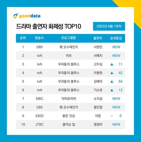 연기력으로 논란 후 복귀한 서예지 화제성 이기고 화제성 순위 둘다 1등…