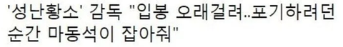 마동석은 "영화보다 중요한 것은 사람 간의 의리나 약속"이라 말하며