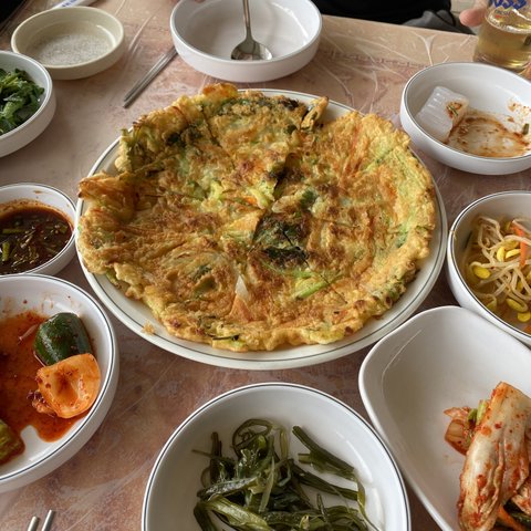 아쉽게도 파전은 없어서 야채전뿌셨어요