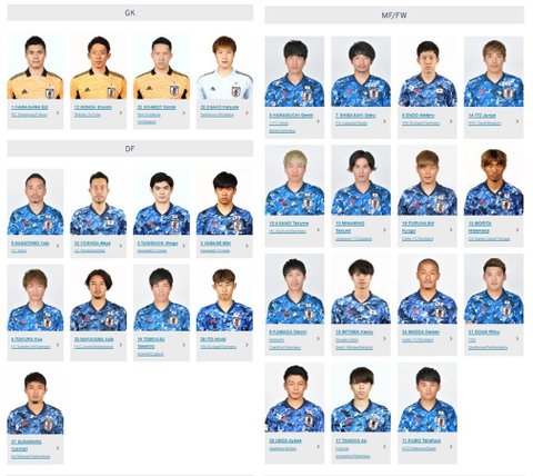 MF - 하라구치 겐키(우니온 베를린/독일), 시바사키 가쿠(레가네스/스페인), 엔도 와타루(슈투트가르트/독일), 이토 준야(KRC 겐크/벨기에), 아사노 타쿠마(VfL 보훔/독일), 미나미노 타쿠미(리버풀/잉글랜드), 모리타 히데마사(산타 클라라/포르투갈), 카마다 다이치(아인트라흐트 프랑크푸르트/독일), 타나카 아오(포르투나 뒤셀도르프/독일), 쿠보 타케후사(레알 마요르카/스페인)
