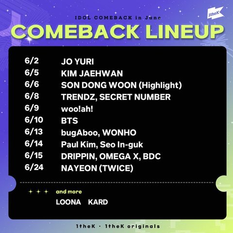 원더케이에 올라온 컴백 라인업