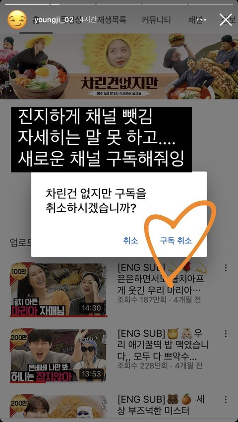 원래 이영지 집 요리 인맥으로 돌아가는 채널이라 차라리 이쯤에서 정리하고 온전히 자기 채널 가지는 게 나은거 같음