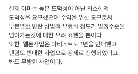 주식상장,고가의 굿즈,게임,웹툰 이런 팬들이 반대하고