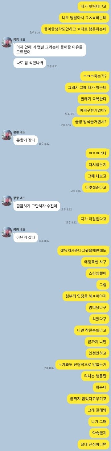 쨋든 맘떴다고 대놓고 이별통보 받은적은 첨인데 나중에라도 얘가 후폭풍 오나요?