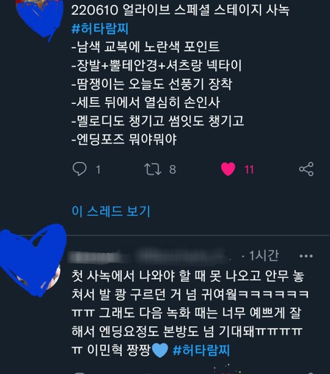 오늘 잔망 최고에 착장, 악세사리 넘 귀엽고 좋았대!