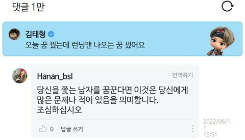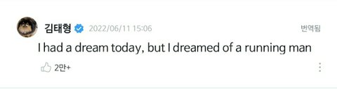 텽이 런닝.맨 꿈 꿨댔는데 한 아미가 꿈에 그런거 나오면 조심하래서 뭔말인가 했는데ㅋㅋㅋ