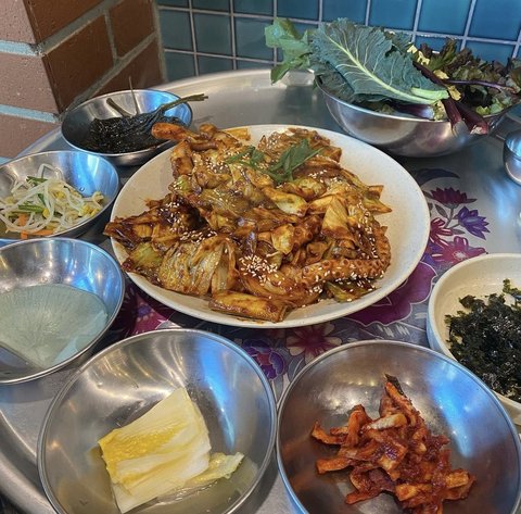매콤한 낙지볶음이 땡겨서 바로 고고 밥에 슥슥비벼서 한입먹고 소주마시면 행복 캬