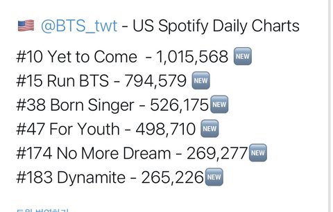방탄 한국어 노래 미국에서 스밍 잘나오는중임