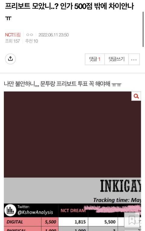 음중보다 예상 점수 차이 별로 안나서 투표해야도ㅑ