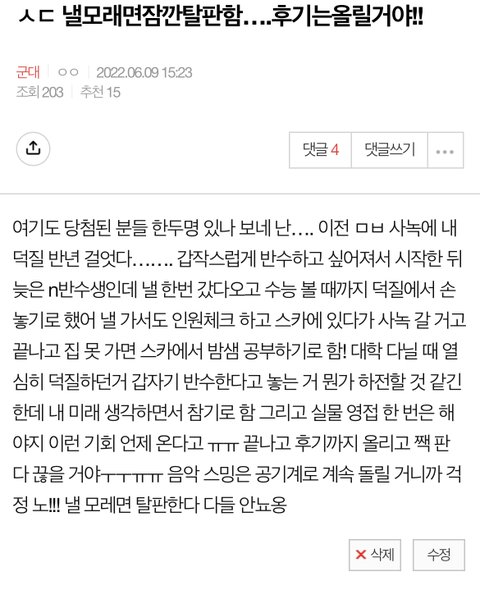 https://m.pann.nate.com/talk/366522762 1번째 (어제 베스트 1위 오른 거 맞앙)