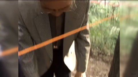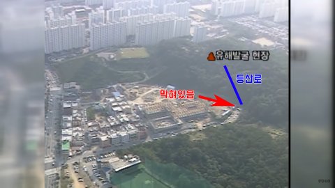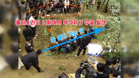 목격자가 유골 위치를 설명하기 전에 주황색 끈 보이시죠??? 저게 폴리스 라인입니다.