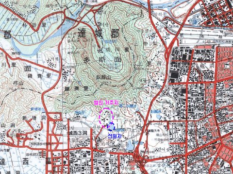 그럼 동그라미 친 쪽일 겁니다. (당연히 목격자 어르신께서 등산하시다가 잠깐 쉬시는데 움푹 파인 곳까지 내려가서 쉬시지는 않았을 겁니다.)