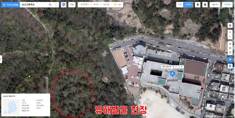 유골 발견 당시 화면을 보면 아파트가 많이 들어서 있습니다. 그럼 당시에 유동인구도 많고 아파트 불 가로등 불도 환했을 겁니다. 근데 사진 가운데 공사하는 거 보이시죠?? 거기가 지금 성산 고등학교인데 당시에는 건설 중이 있었습니다.