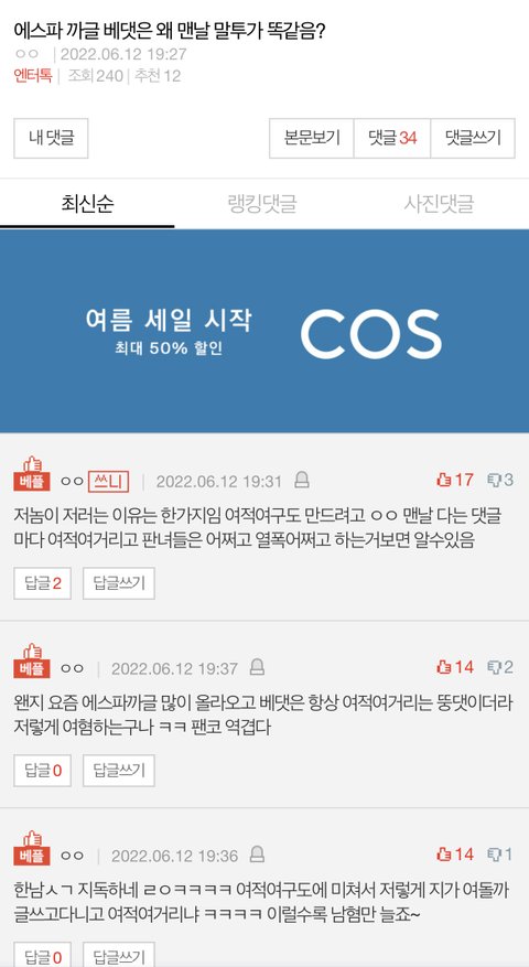 그 이유는 까글쓴놈=베댓쓴놈이기 때문임ㅇㅇ