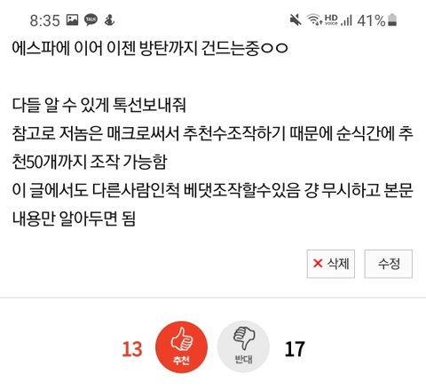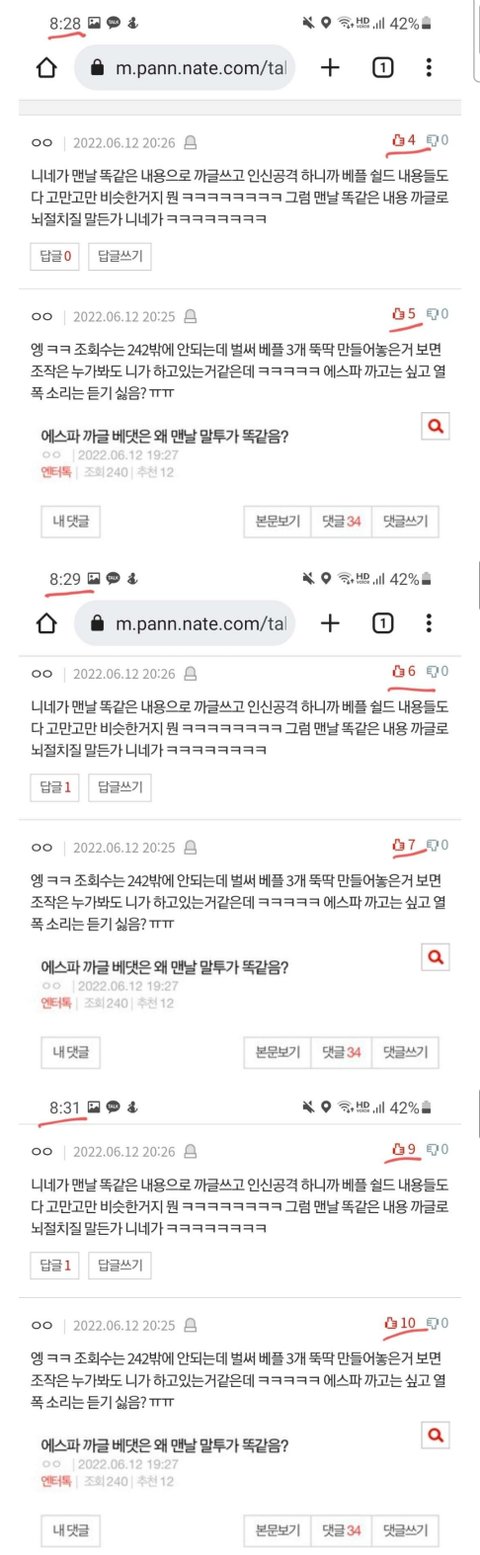 +조작충 왔다 ㅋㅋ 실시간으로 추천수조작하는거 캡쳐함