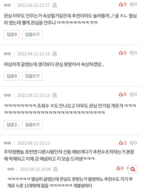 조작충 등판한 시점 이후로 글 비추도 생김