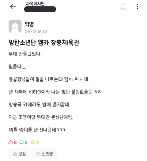 에타에 방탄 장충체육관 알바 후기 올라옴