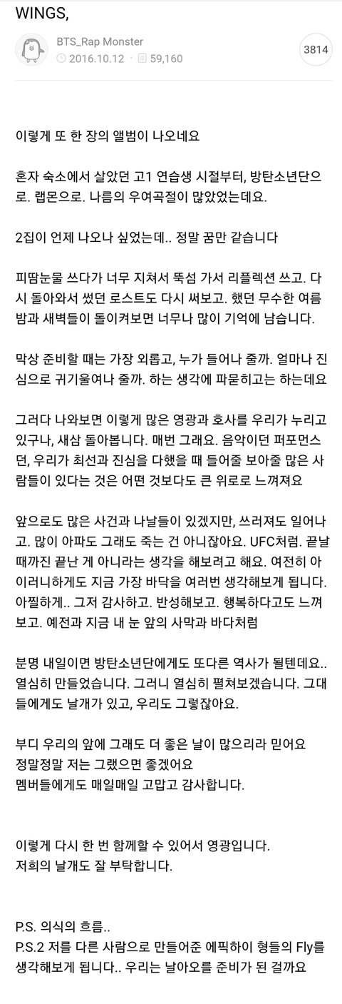 난 윙즈때 남준이 편지볼때마다 눈물흘림