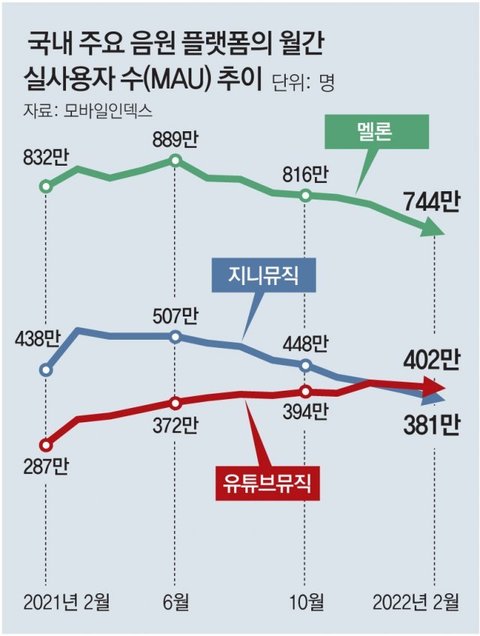멜론은 망해가고 유튜브뮤직은 상승세고