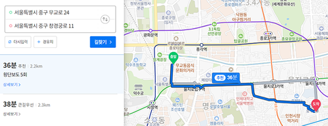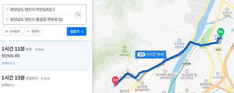 (※같은 지역이지만 거리가 멀게 나온곳도 있었음)