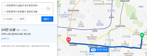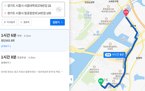 경기도 시흥 두 당첨판매점 도보거리 4.2km (직선거리는 3km 정도될듯)