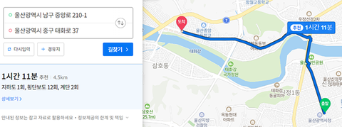 울산광역시 두 당첨판매점 도보거리 4.5km (직선거리 4km 이내일듯)