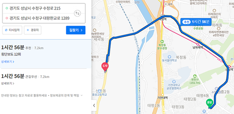 경기도 성남시 두 당첨판매점 도보거리 7.2km (직선거리 4km 정도 될듯)