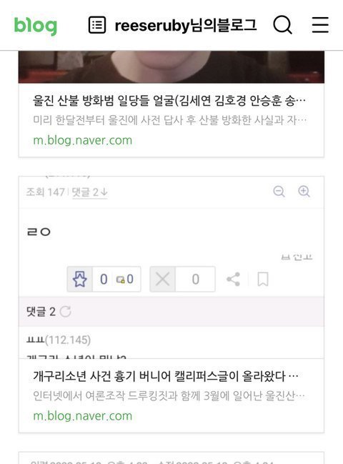 몇년간 민주당을 위해 여론조작과 청부업을 해온 성소수자 무리가(웹툰작가 겸 유튜버 레바,보배드림 취임식 수류탄 테러글 올린 수류탄남인 웹툰작가 박지 윤석열과 김건희 자택 테러글을 올리고 잡혀간 여장갤 고닉 설담, 이들과 함께 모든 일들을 기획한 유튜버 유우키의 일본이야기 포함) 사전선거 조작 및 부정선거를 덮기위한 시선끌기용으로 울진에 미리 한달전부터 사전 답사를 다니며 준비한 끝에 2022년 3월 4일 오전 11시 17분경에 일부러 산불 방화를 함(미리 사전 답사 후 방화를 했다는 자백, 드루킹짓 했다는 자백있음) 이들의 얼굴과 신상을 울진방화범 얼굴이라 올린 글을 최근들어 블로그 글을 내리라고 협박과 돈으로 매수하려는 시도를 계속해서 하더니 네이버뉴스 및 온갖 커뮤니티에서 조작 드루킹짓을 하는 무리답게 수백개의 아이디로 방화범들의 얼굴을 올린 글을 청소년 유해 게시물로 신고를 넣어 글을 내려버림 해당 증거들과 함께 울진산불 방화범들의 얼굴을 새로 글 파서 올렸으니 꼭 봐주세요 오랫동안 엑소와 방탄 팬코 악플러짓을하며 괴롭혀 오다 이번에 빅히트에 1500만원 벌금 고소당한 사람이 바로 울진 산불 방화범 얼굴글에서 첫번째 두번째 사진 속 사람임
