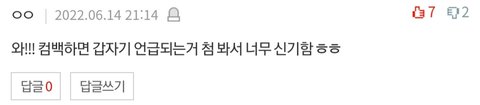 엔진들이 잘 먹금해도 정신나간 놈들이 알아서 톡선 만들어주니까 이젠 걍 맘 놓고 즐기는 중 아 몰랑~~ 피할 수 없으면 즐겨버려ㅕ