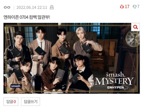 암튼 적어도 저 ㅇㄱㄹ글 본 4만여명이 엔하이픈 컴백 날짜는