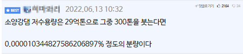 소양강에 뿌려줬으면 좋겠다고 함.
