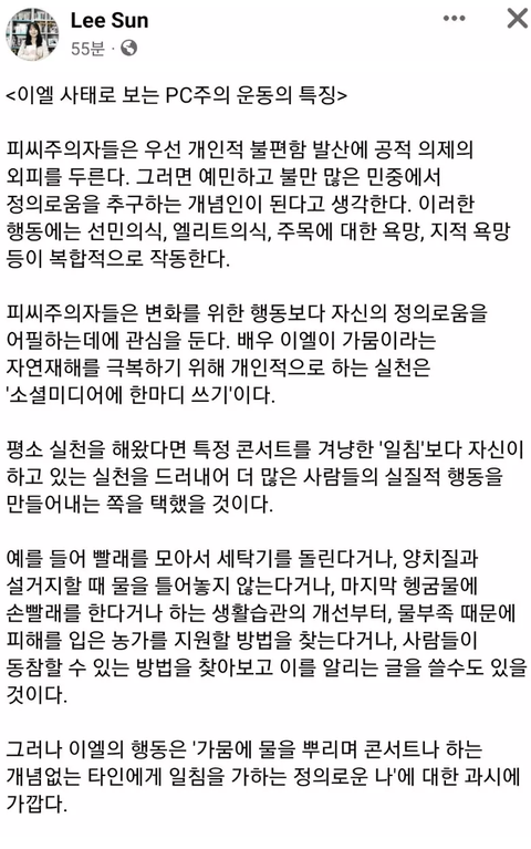 장문으로 이엘을 저격하는 글을 올림.
