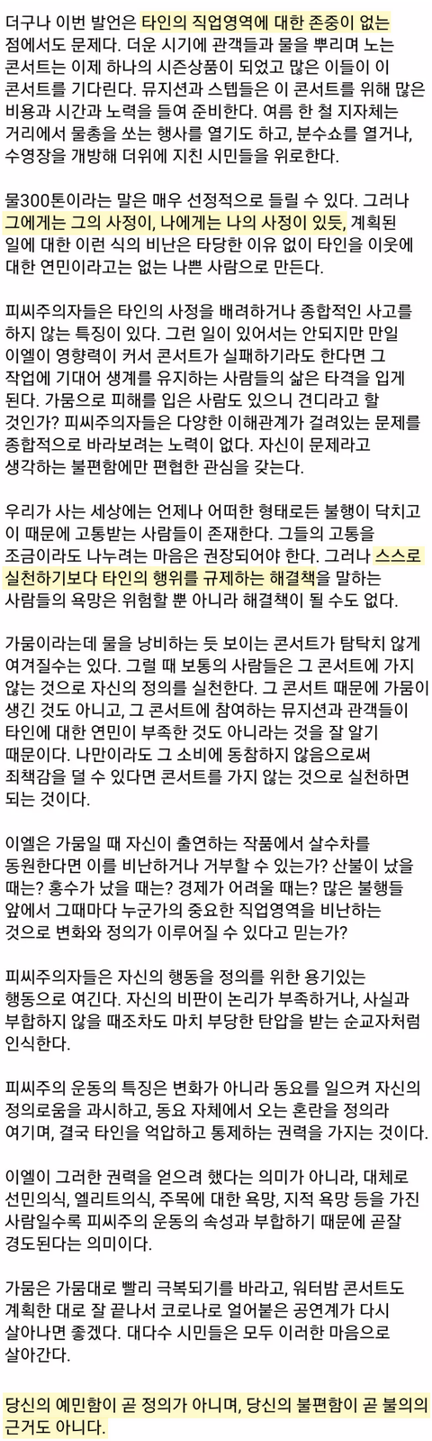 워터밤 콘서트에 쓸 물 300톤을