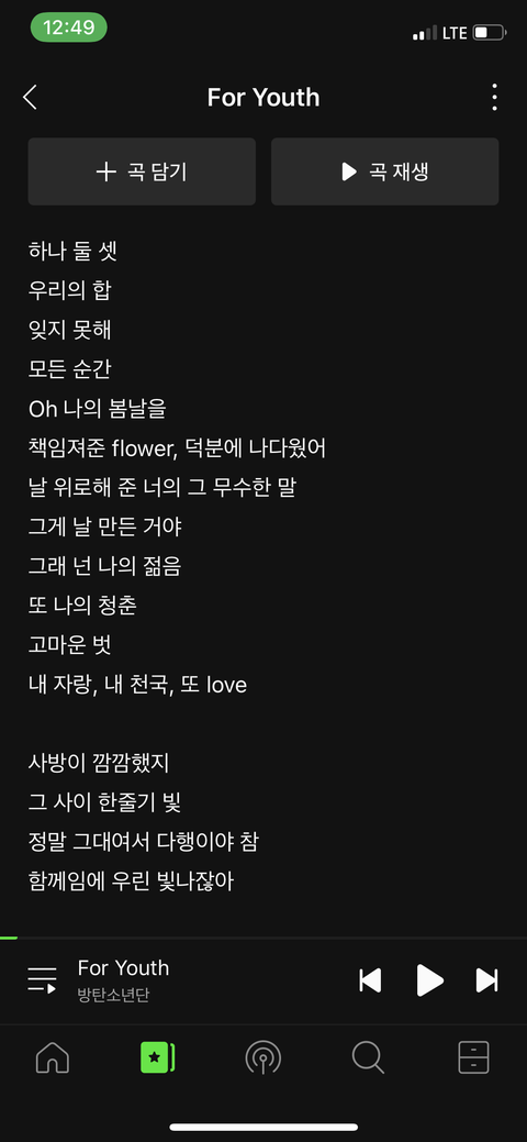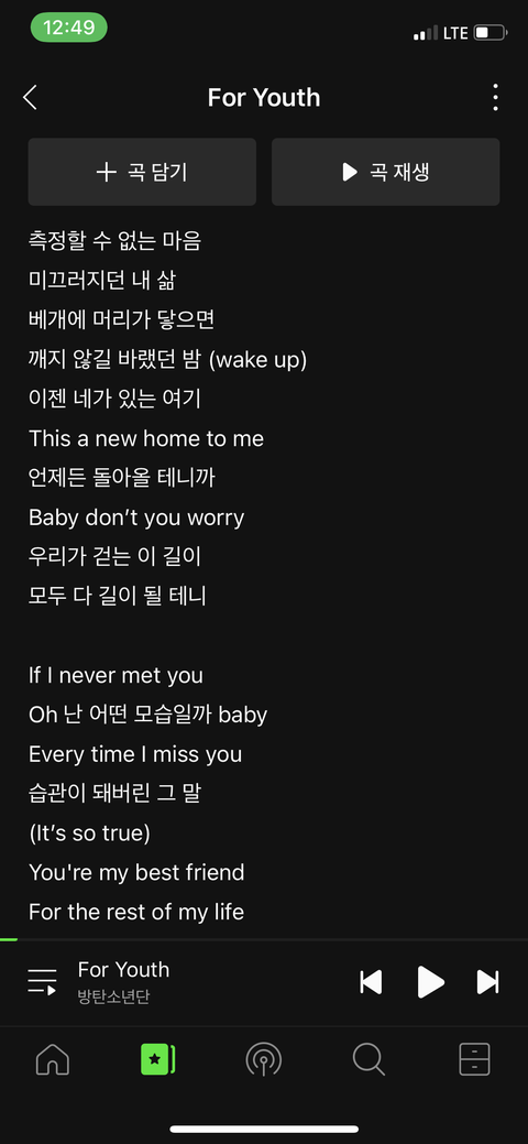 이 가사들 ㅠㅠ 진짜 언제나 노래로 진심을 전하는 방탄 항상 응원할 수 밖에 없다 ㅠㅠ 멋진 모습으로 다시 만나
