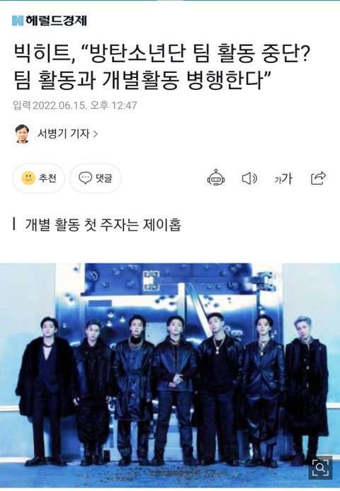 어제 방탄회식 이후로 단체활동 중단이라고 기사 시작