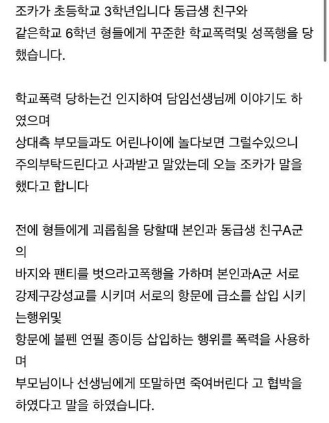 단순 학교폭력 인줄 알았던 일이 성폭행 및 협박 상상할수도 없는 일들이
