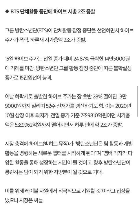 방탄이 어제 말한거랑 주식이 무슨 상관이어서 저렇게 되는거야?ㅠㅠ