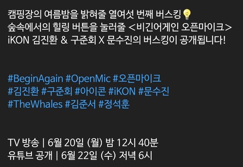 비긴어게인 티저] 해가 진 뒤, 일상을 벗어나 찾아온 숲속 열여섯 번째 낭만 버스킹의 주인공 iKON 김진환 & 구준회 X 문수진